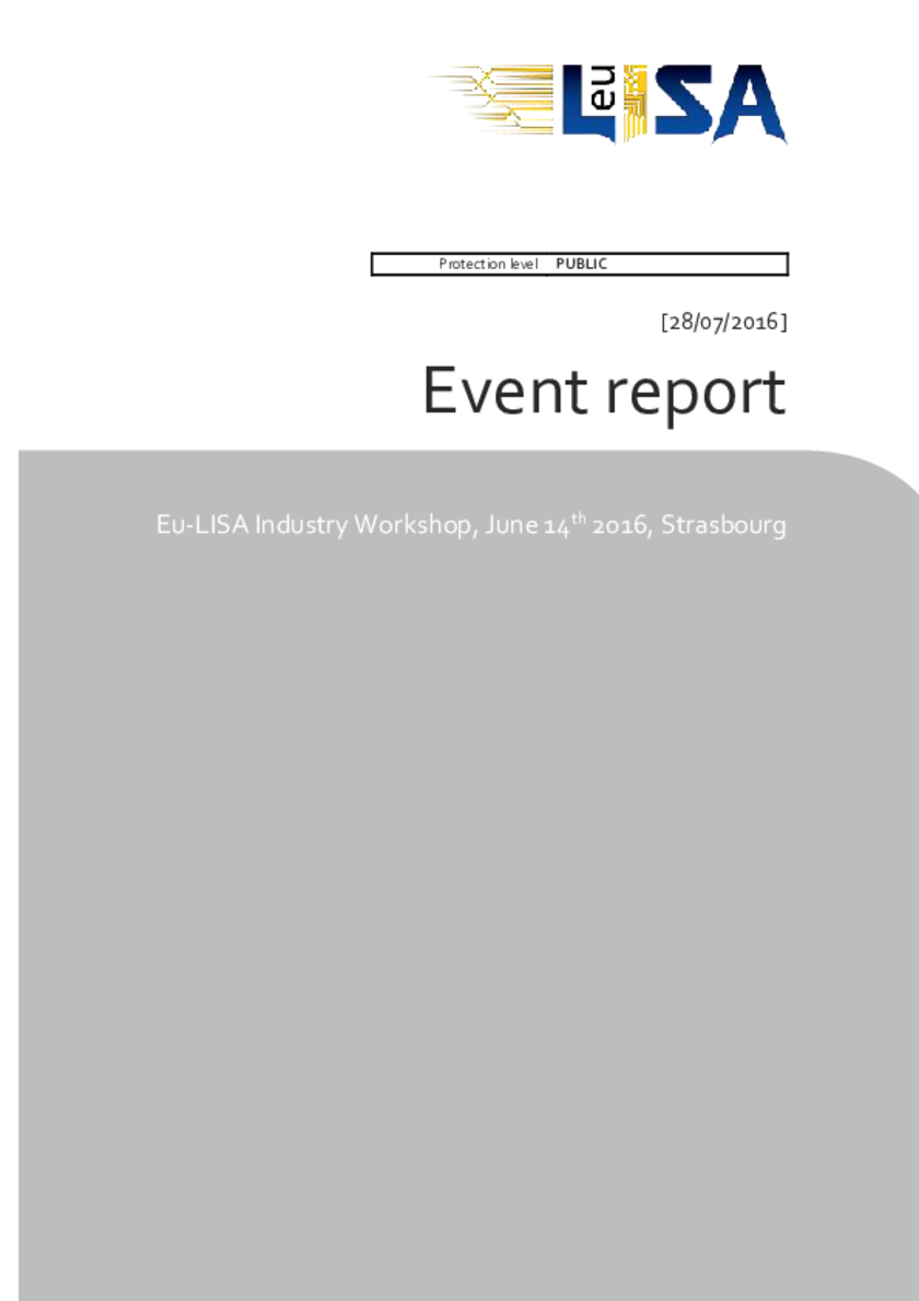 On the 14th June 2016 eu-LISA hosted an Industry Workshop entitled "Increasing the Efficiency of Hotspots Handling Migratory Pressure through Practical Technological Solutions" in Strasbourg, France. This report contains highlights of the presentations and discussions that took place on the day.