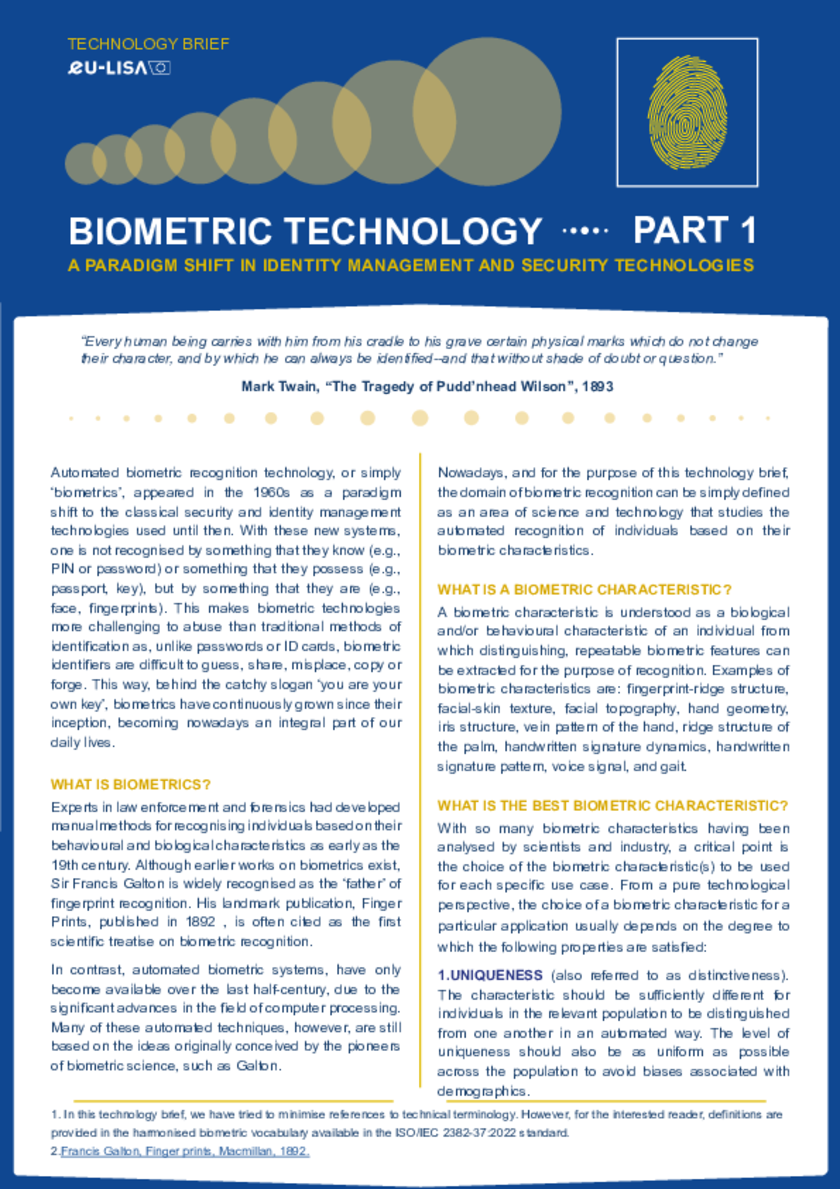 eu-LISA Technology Brief series - Biometric Technology, Part 1: A Paradigm Shift in Identity Management and Security Technologies