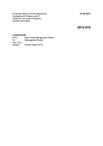 This report contains an overview of the activities that were carried out during 2012 for setting-up eu-LISA, in order to prepare for the smooth arrival of the Executive Director and the Agency entry into operations on 1 December 2012.